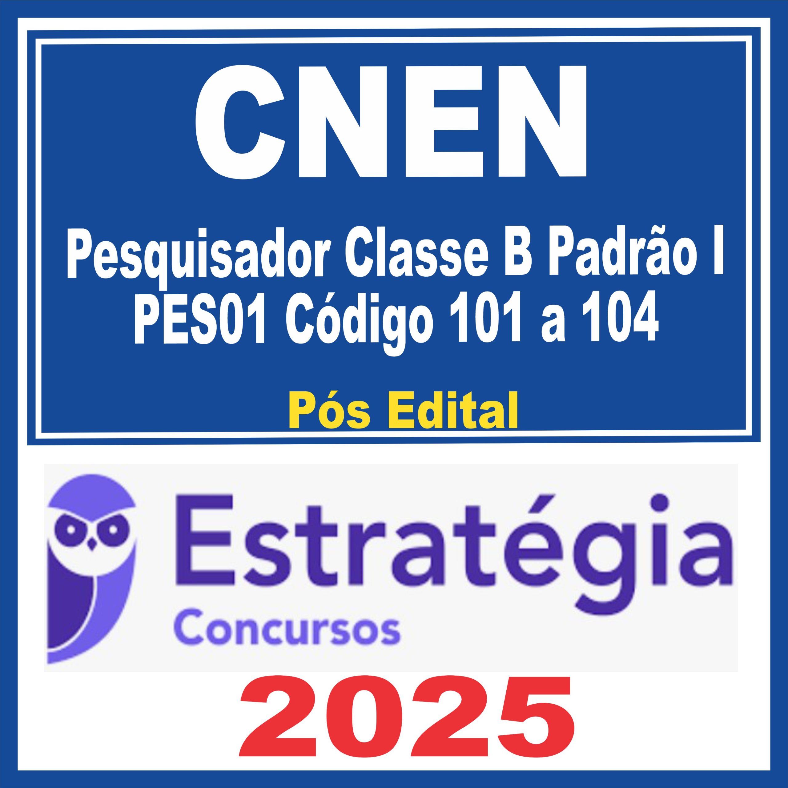 CNEN (Pesquisador Classe B Padrão I – PES01 Código 101 a 104) Pós Edital – Estratégia 2025